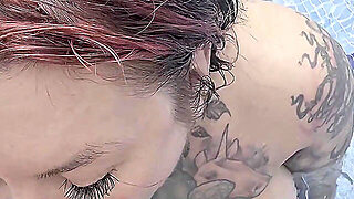 Blonde Babe Nina Heels Eats Out a Hairy Mature Pussy At The Swimming Pool