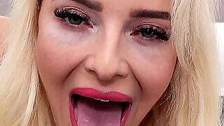 Horny Brunette Fingers Herself Wild in the Bathroom and Sucks BBC